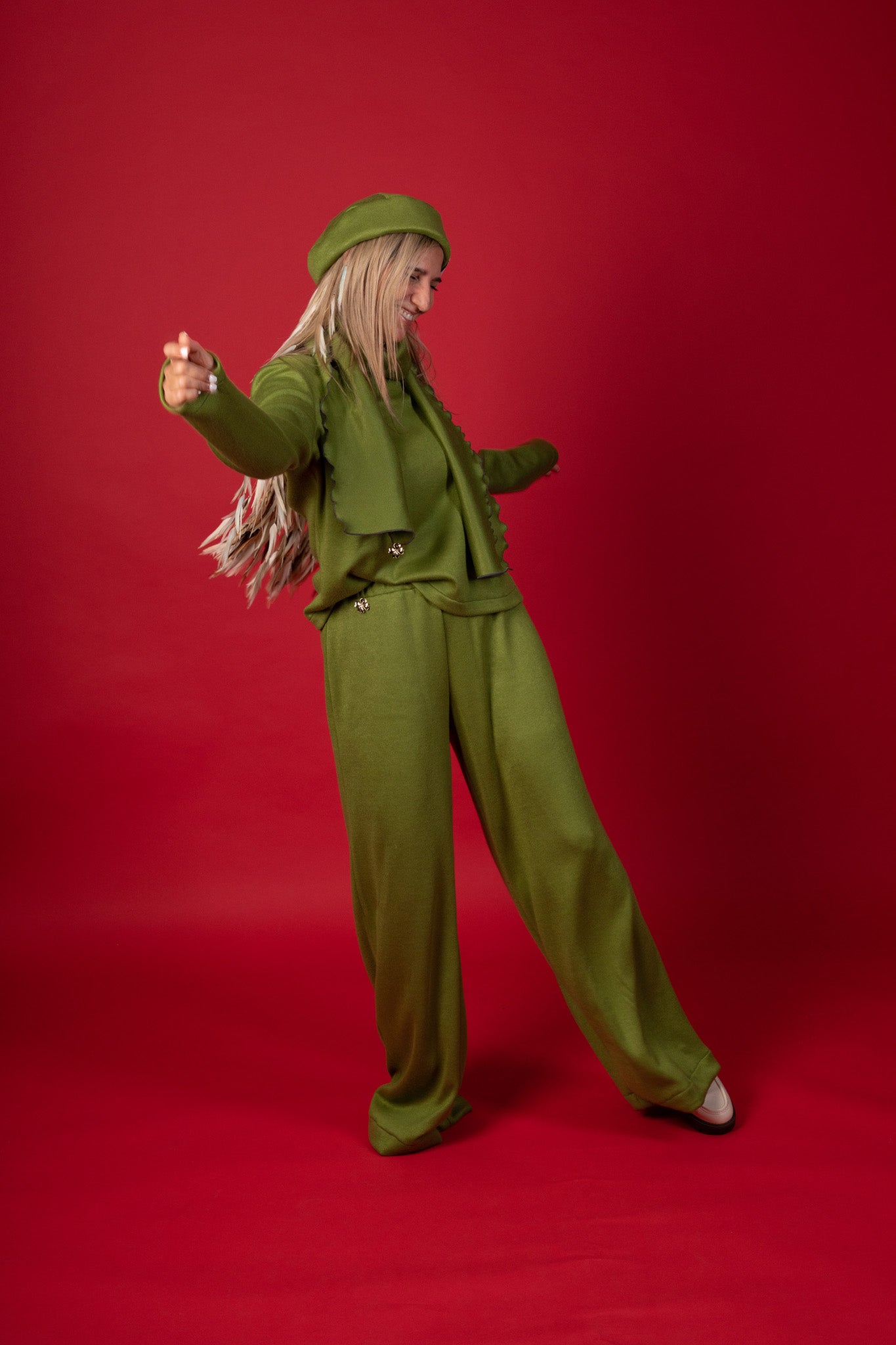 The Green Smile Scarf is a delicate accent that adds charm and personality. Made from soft green knit, it is cozy and stylish—drawing inspiration from effortless French elegance. Perfect as part of the Green Smile set or worn alone as a fashion statement.