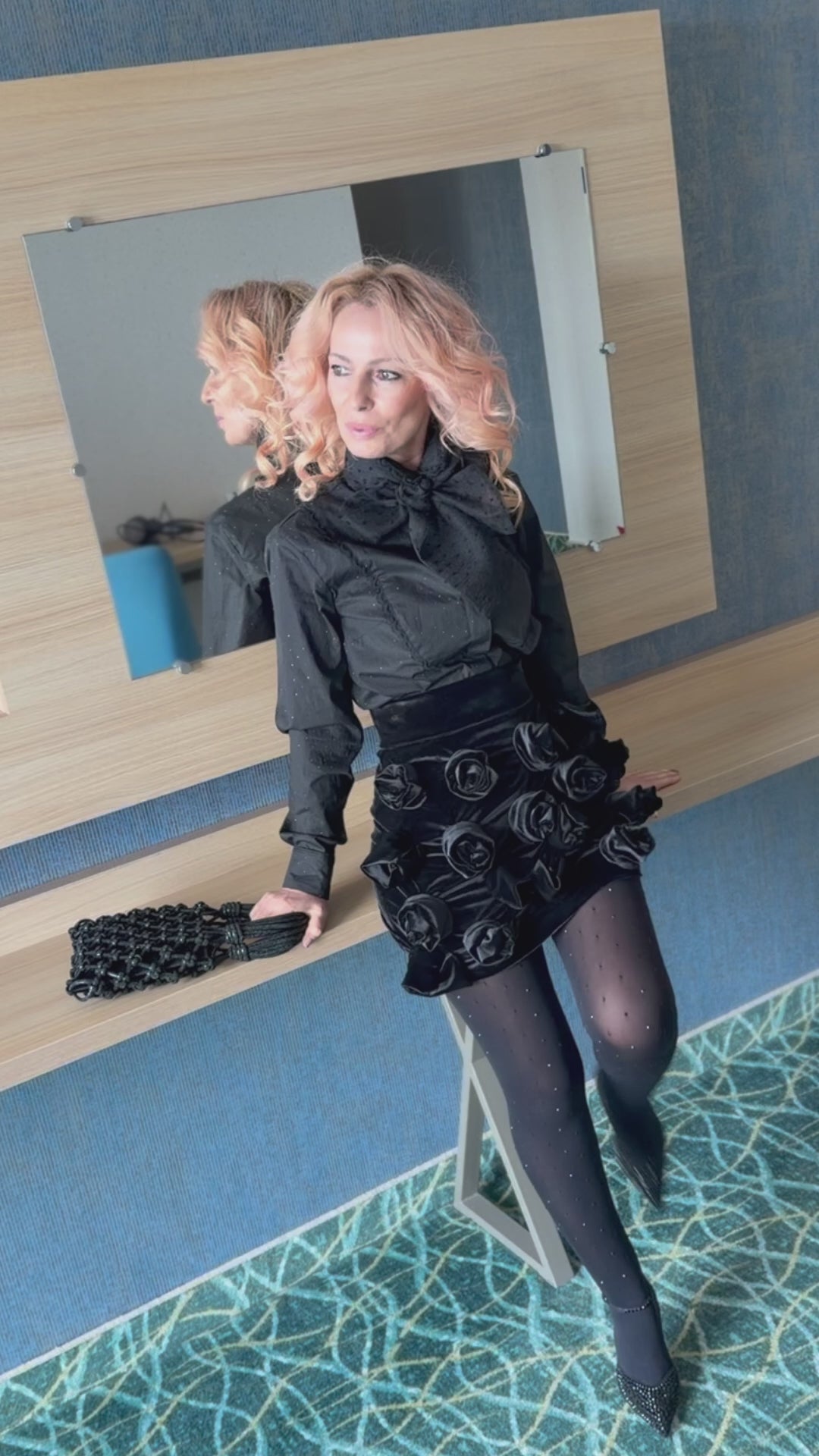 The Noirelle Shirt blends classic sophistication with a touch of modern glamour. Crafted from premium black cotton, it features a shimmering dotted finish that catches the light beautifully. The standout detail of the design is the oversized organza bow at the neckline, bringing a feminine and couture-inspired charm. With its structured shape and luxurious accents, the Noirelle Shirt is perfect for evening outings, festive celebrations or elegant everyday looks. A signature piece that elevates any outfit with graceful refinement.