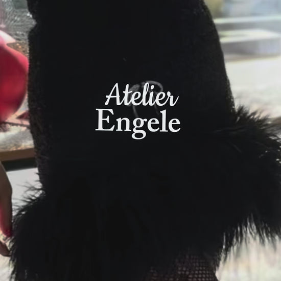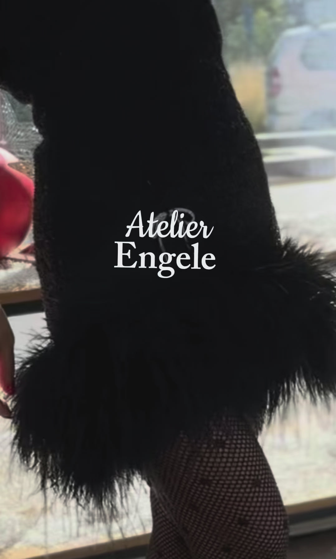 Роклята Eclissa е ода на нощта. Изработена от черна материя с втъкани сребристи нишки. Мини силует, V-образно деколте, без ръкави. В долната част блестят ефектни черни пера и кокетна панделка от бляскави камъни. Перфектна за празнични поводи, вечерни събития или когато просто искаш да бъдеш запомнена.