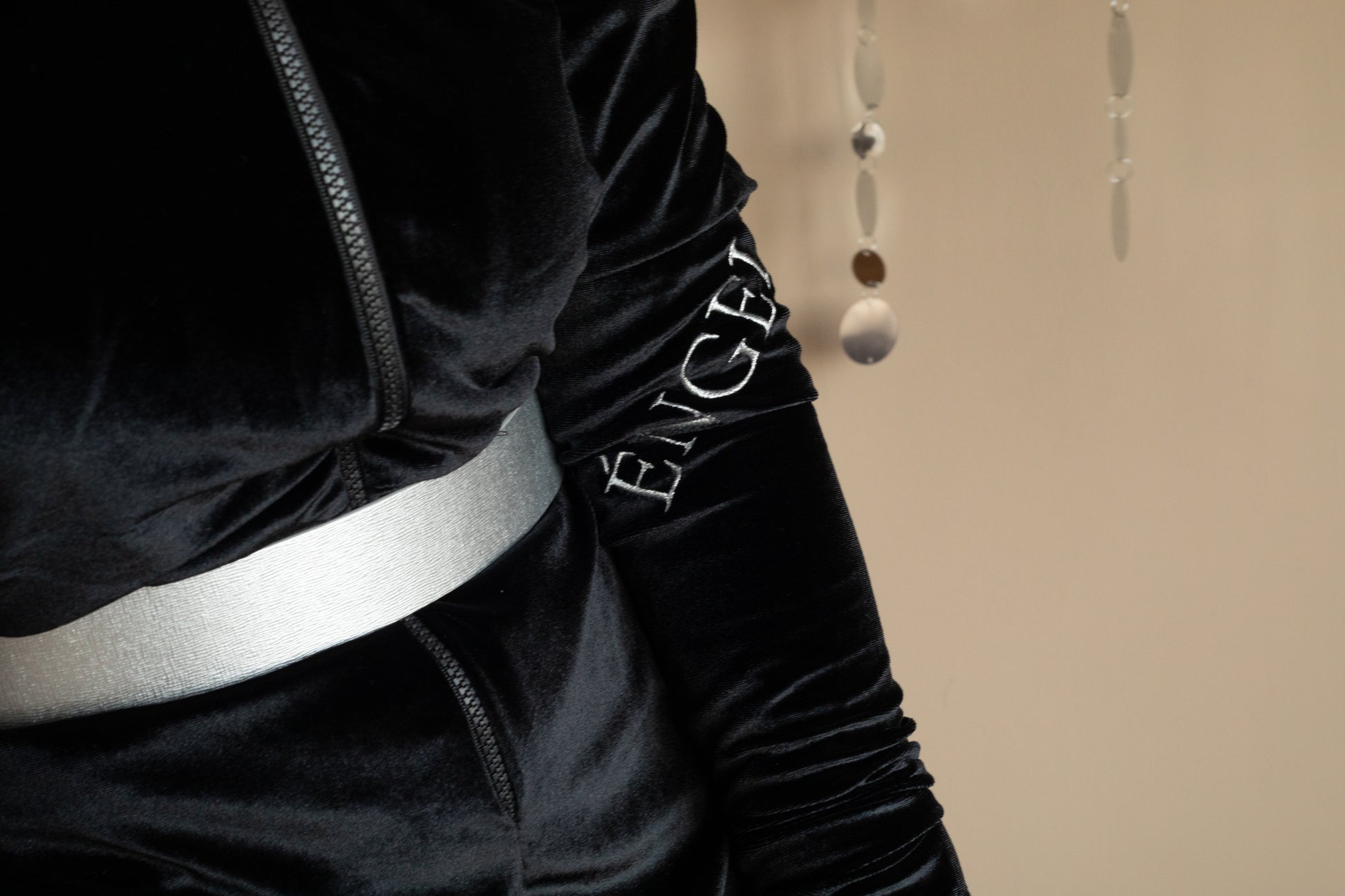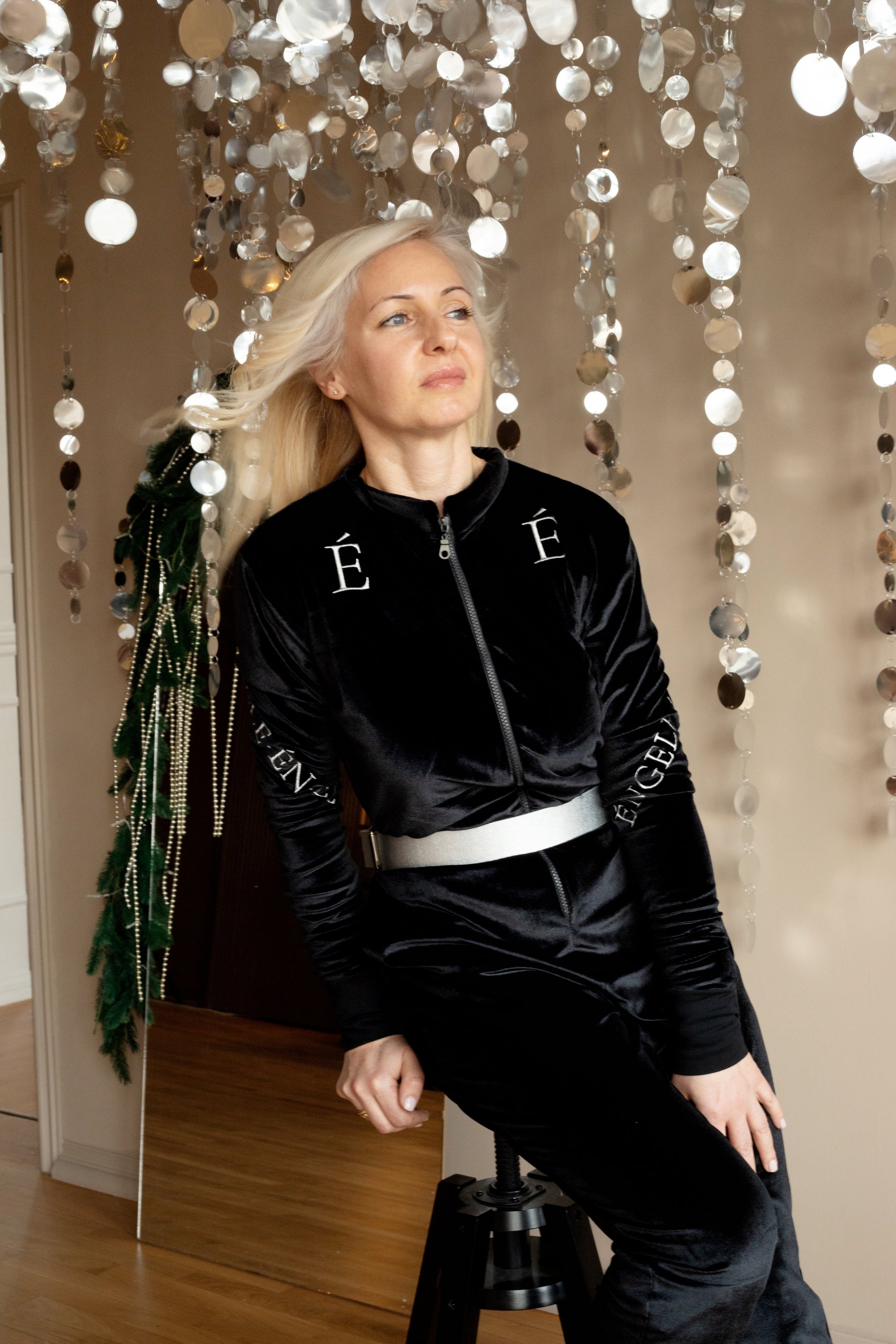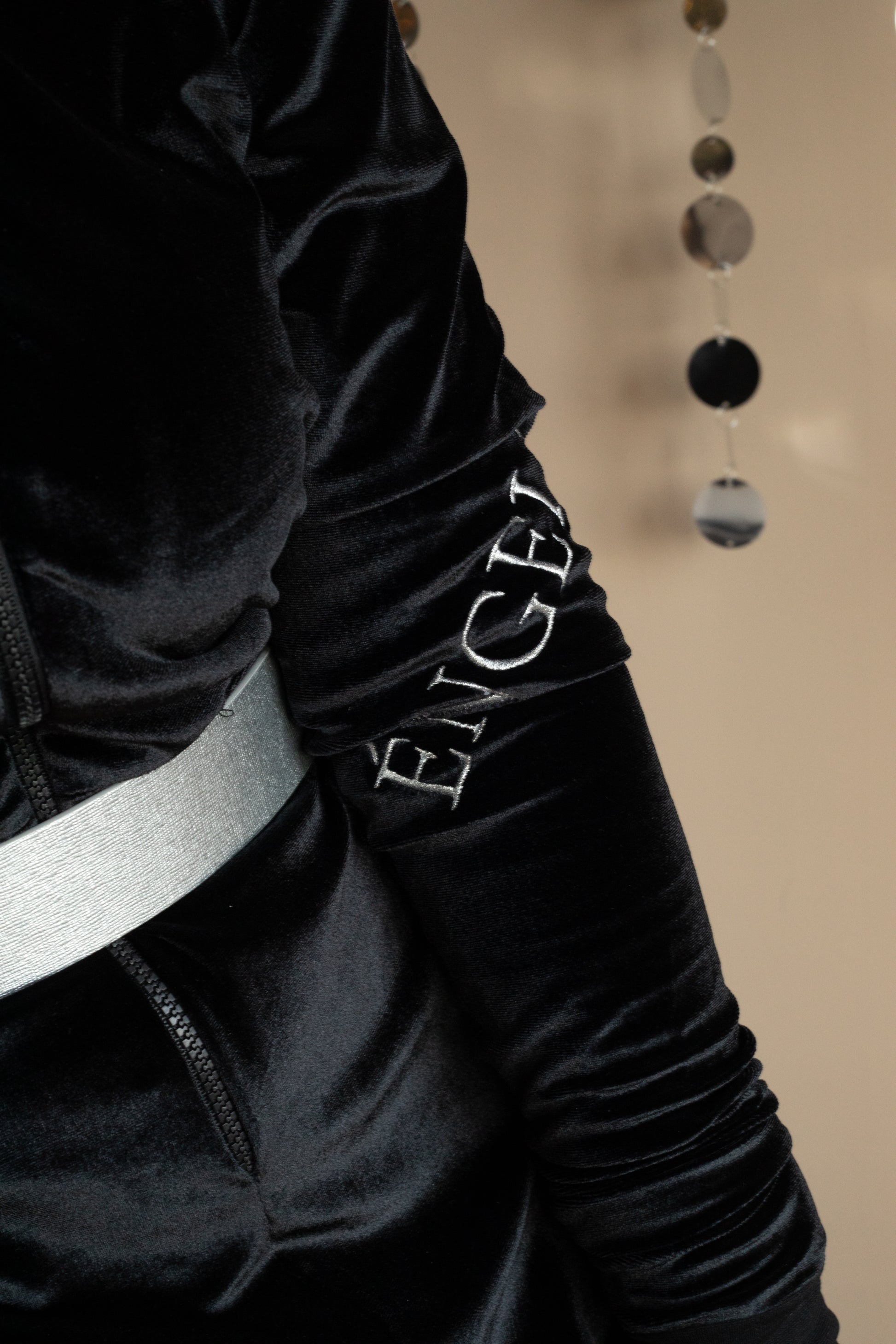 Гащеризонът Noir въплъщава непринудена изтънченост с модерна и уверен визия. Изработен от меко черен кадифе, той следва тялото с гладък, елегантен силует, като същевременно предлага изключителен комфорт. Дизайнът с цип отпред добавя фин спортен акцент, балансиран от луксозната текстура на плата. Красивите бродерии в сребристо - ÉNGELE, издигат изработката, създавайки отличително, но семпло изявление. Проектиран да преминава плавно от спокойни моменти към изискан стил, този гащеризон улавя същността на съвременната елегантност с нотка на смела женственост.