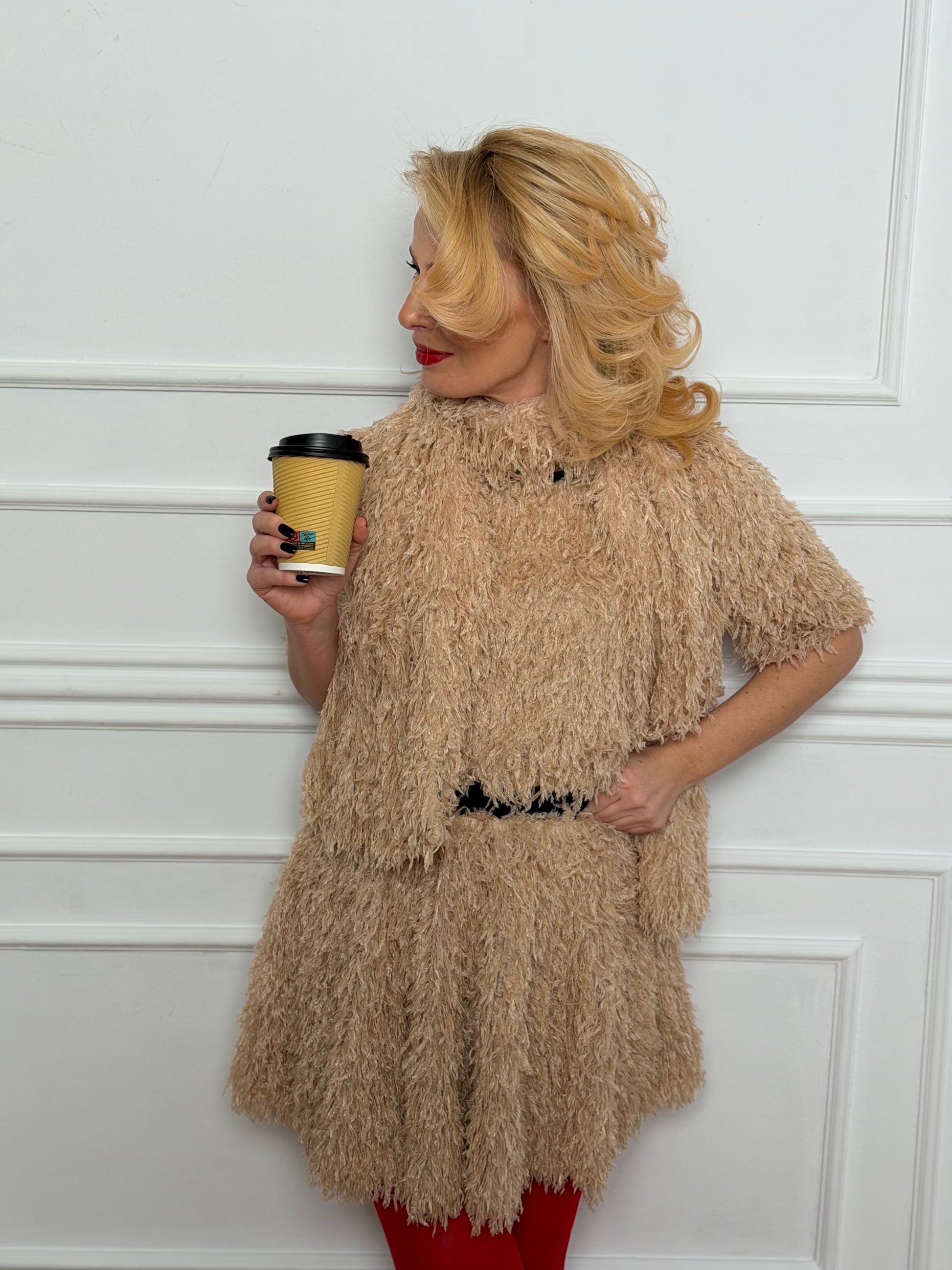 Nox Beige превръща мекотата и текстурата в изискано модно изявление. Изработена от нежна материя обсипана с бежови пера, тя добавя фино движение и дълбочина към изчистения мини силует. Структурираната талия осигурява баланс и дефиниция, докато перата допълват дизайна с вдъхновен от висшата мода завършек. Независимо дали е стилизирана с подходящата блуза или се носи самостоятелно, тази пола улавя визията на ÉNGELE за семпла елегантност и съвременна женственост.