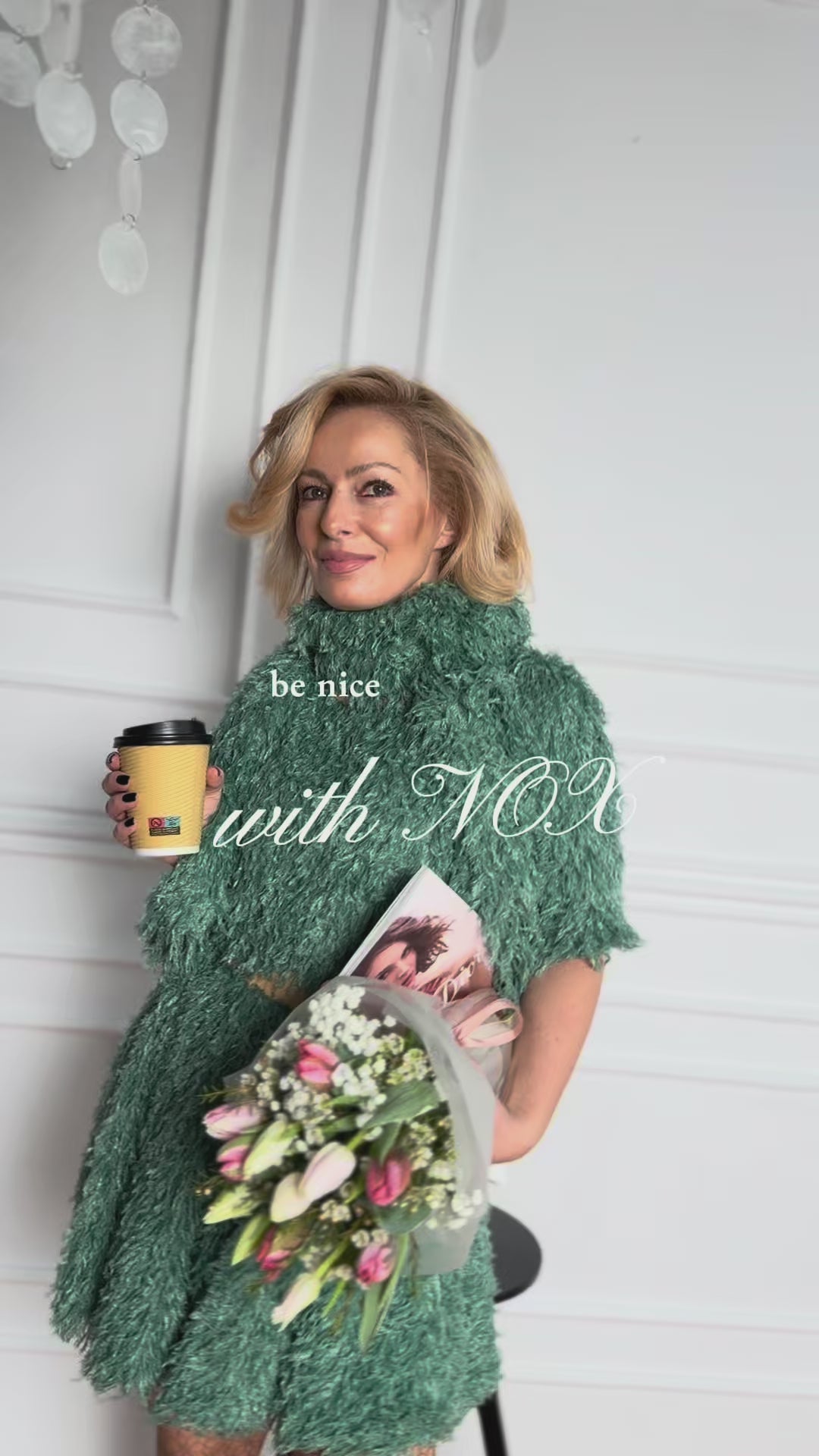 Блузата Nox въплъщава лекота и изискана женственост. Изработена от мека зелена материя от пера, тя създава ефирна, текстурирана повърхност, която се движи нежно с тялото. Свободният силует и късите ръкави балансират изразителната текстура, което води до дреха, която е елегантна, но същевременно непринудена. Фина и сияйна, тази блуза е проектирана да издигне както координирани ансамбли, така и изискани самостоятелни визии, отразявайки философията на ÉNGELE за тих лукс и модерна грация.