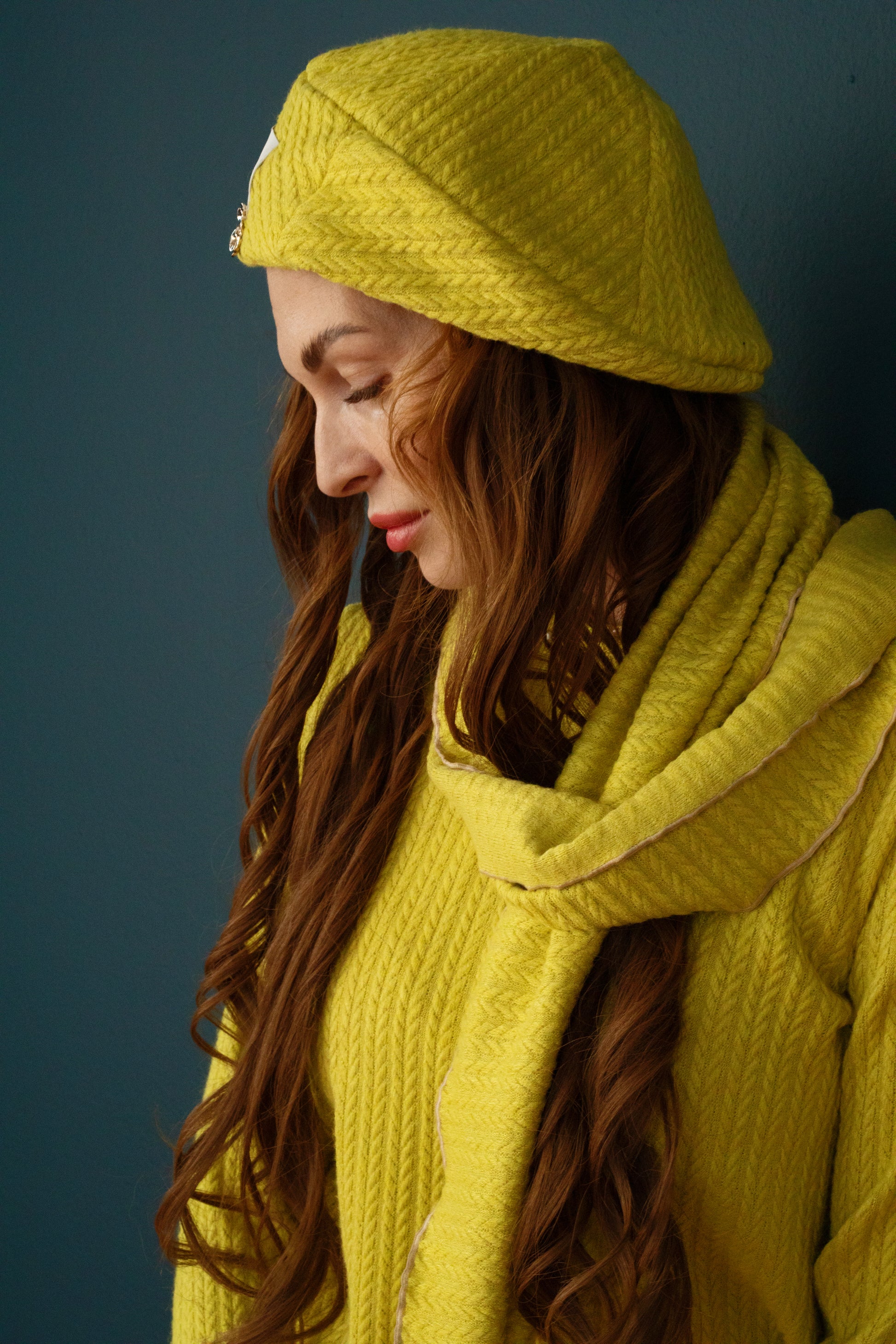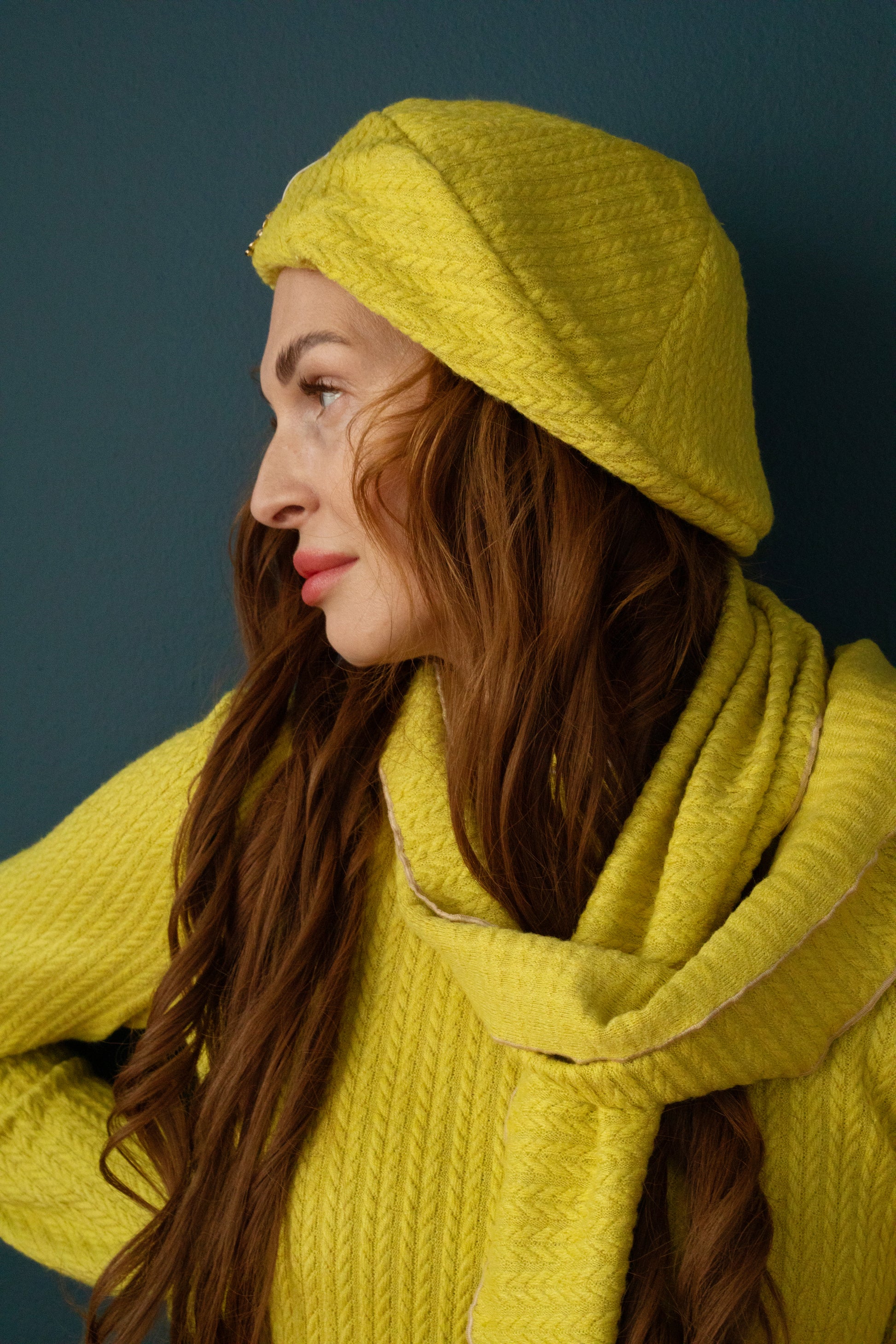 The Reseda Softline Trousers are designed to elongate the silhouette with ease and fluidity. Crafted from textured knit fabric in a fresh reseda green shade, they fall gracefully into a wide-leg shape that moves effortlessly with the body. The comfortable waistband ensures a flattering fit, making these trousers ideal for both relaxed and elevated styling. Paired with the matching blouse and scarf or worn separately, they embody the ÉNGELE vision of modern elegance and wearable luxury.