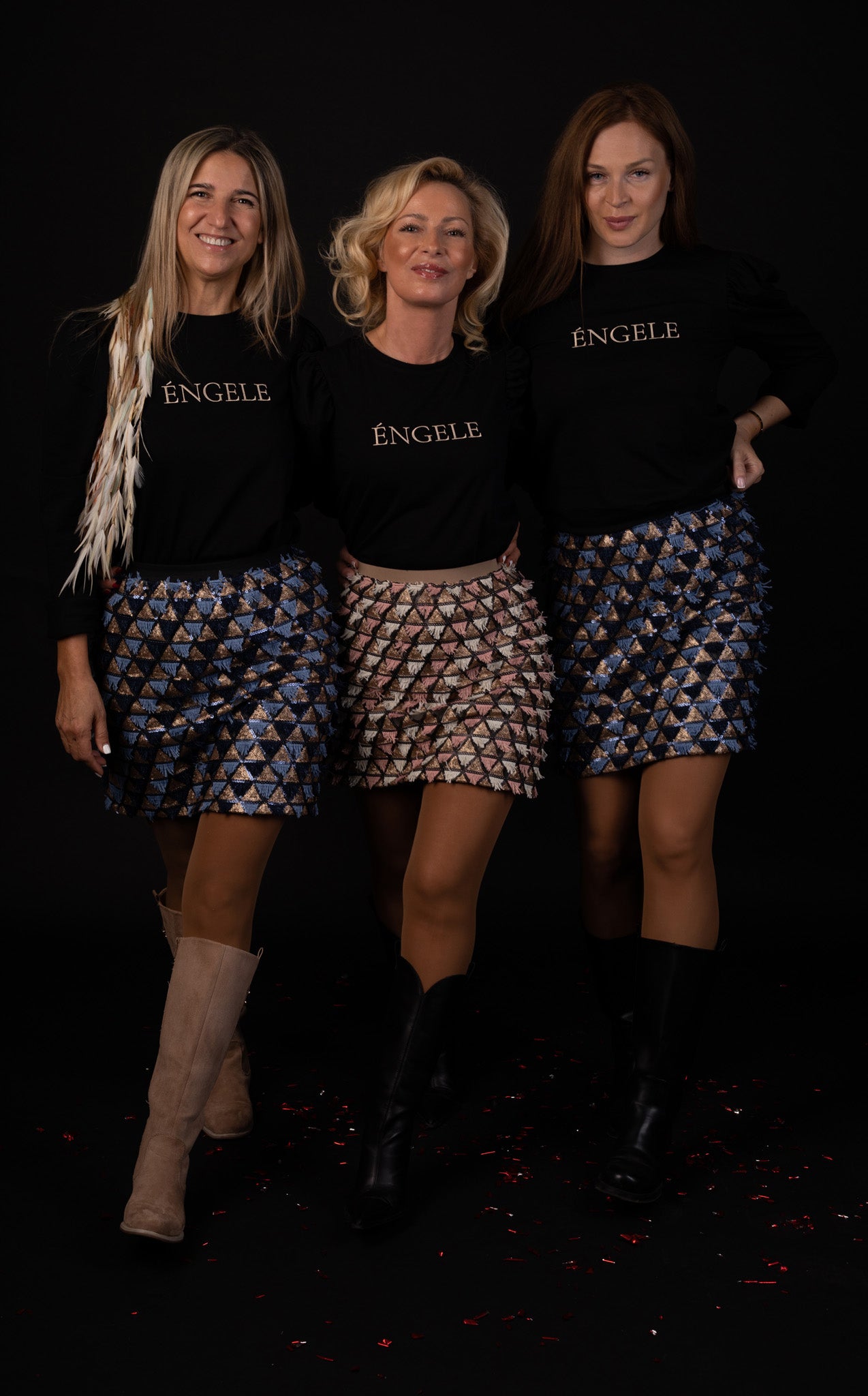 Пола Rosé Lumière е истински празник на женствеността. Изработена от луксозен плат, обсипан с розови и златни пайети в геометричен мотив, тя улавя светлината при всяко движение. Силуетът е прав и изискан, подчертава фигурата и съчетава комфорт с елегантност. Идеална за вечерни събития, празнични поводи или дръзка дневна визия с мека блуза от плетиво.