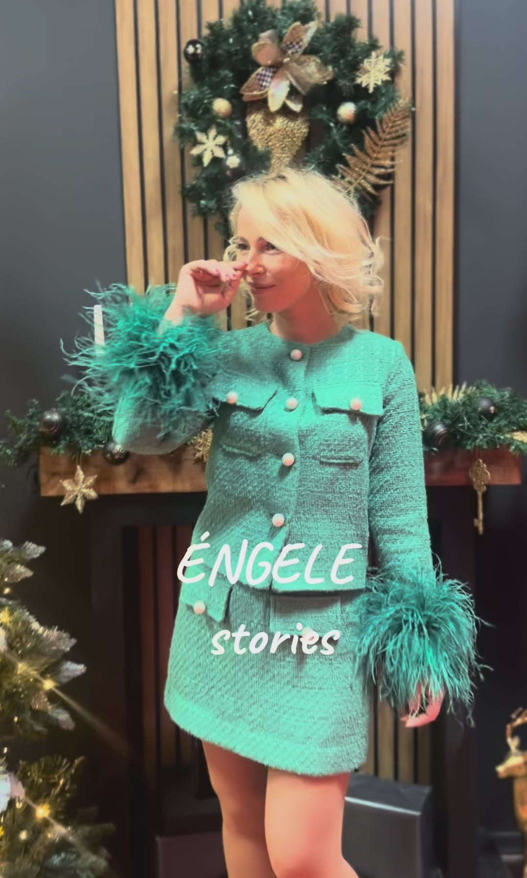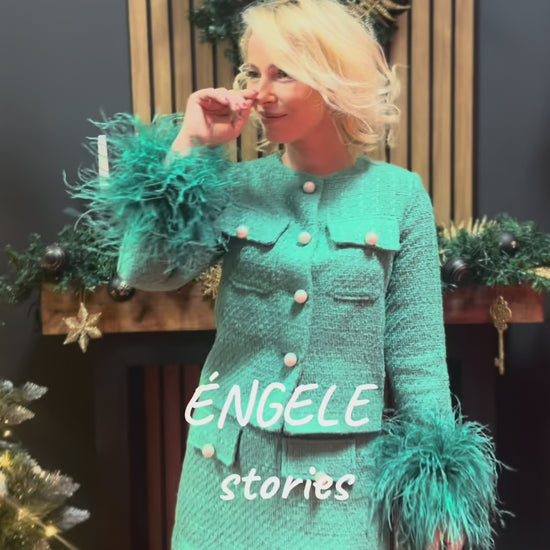 Verde Élise Сако от зелено букле с пера